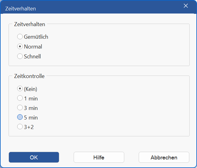 Zum Deaktivieren des Bullet-Training wählen Sie die Zeitkontrolle "Kein".